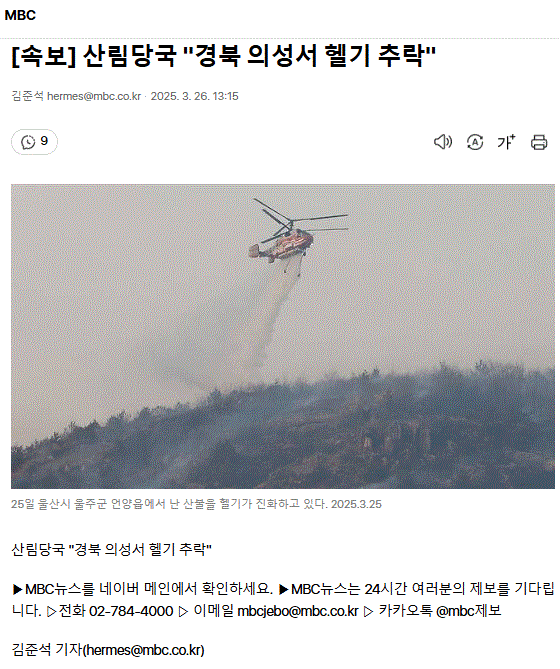 [속보] 산림당국 "경북 의성서 헬기 추락" ㅡ 전광훈 고향 의성에서 산불이 났을까 의심