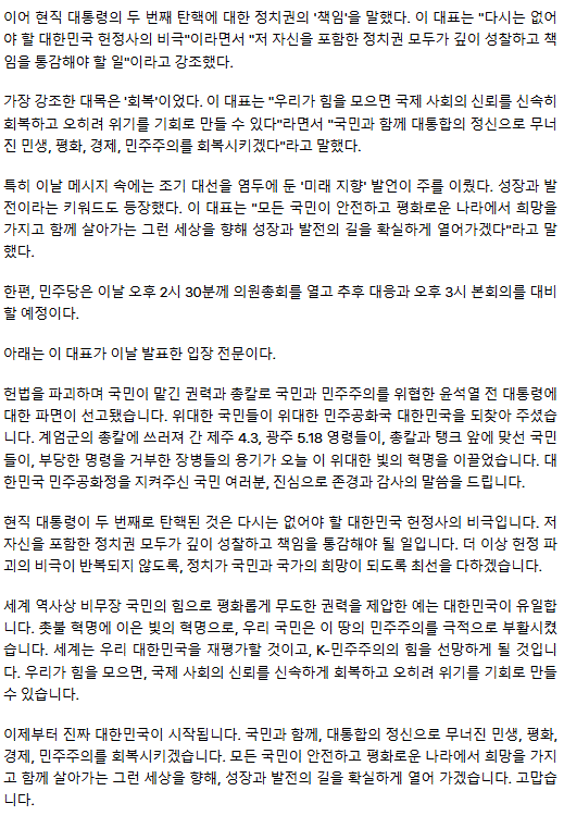 우리대신 열일하고 있다고 믿으면서 기다렸는데 막상 이루어 낸 일이 뭐가 있지? 그나마 이재명당대표 박찬대원대일때는 희망이 보였는데 지금 민주당은? 영혼을 갈아넣어 정상회담하신분은 이재명 대통령이고 그 성과에 찬물 끼얹은 것은 민주당이잖아 정말 몰라서 그러는건가?