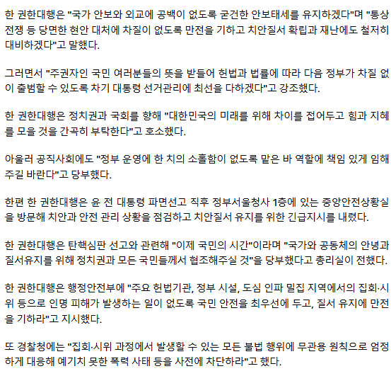 [尹파면] 韓대행 "차기 대선 관리에 최선… 공명정대하게 치러야"(종합) ㅡ 공명정대? - 태세전환 빠르네