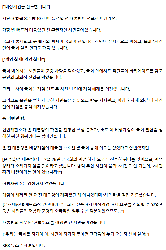 헌재 “계엄 막은 건 시민들”… 돌아보는 그날 ㅡ 겨울의 그날을 기억하자구요