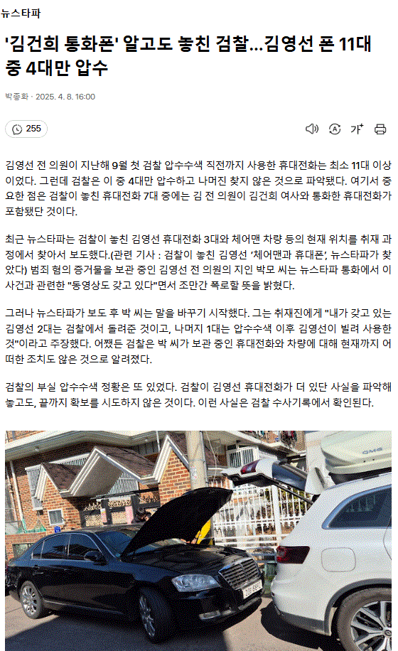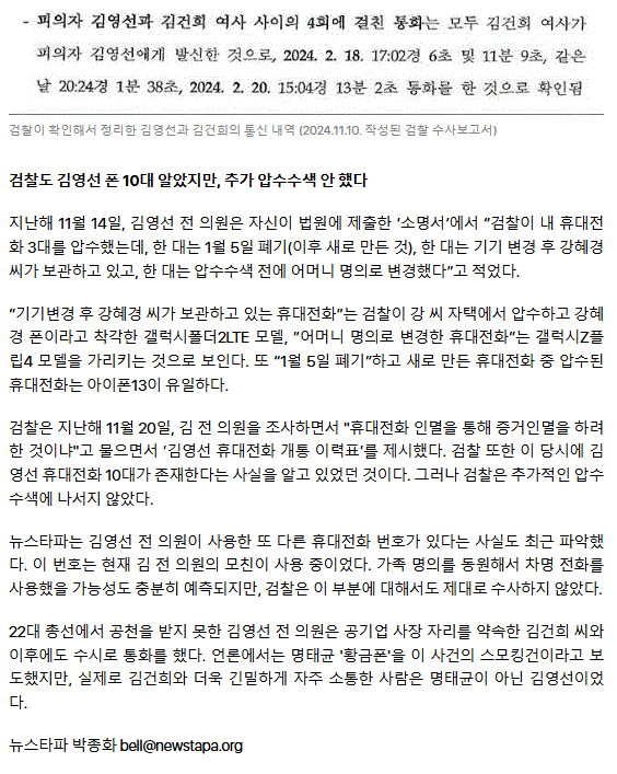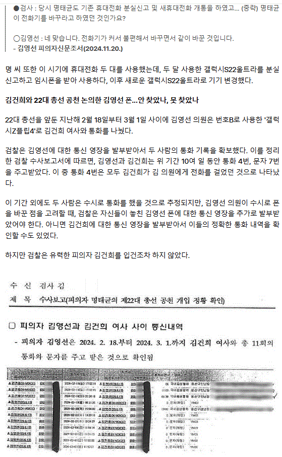 '김건희 통화폰' 알고도 놓친 검찰... 김영선 폰 11대 중 4대만 압수 ㅡ 압수 못한 검찰은 해체하라