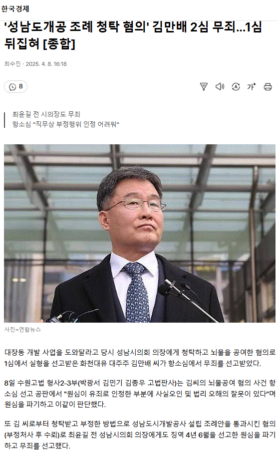 '성남도개공 조례 청탁 혐의' 김만배 2심 무죄…1심 뒤집혀 [종합]