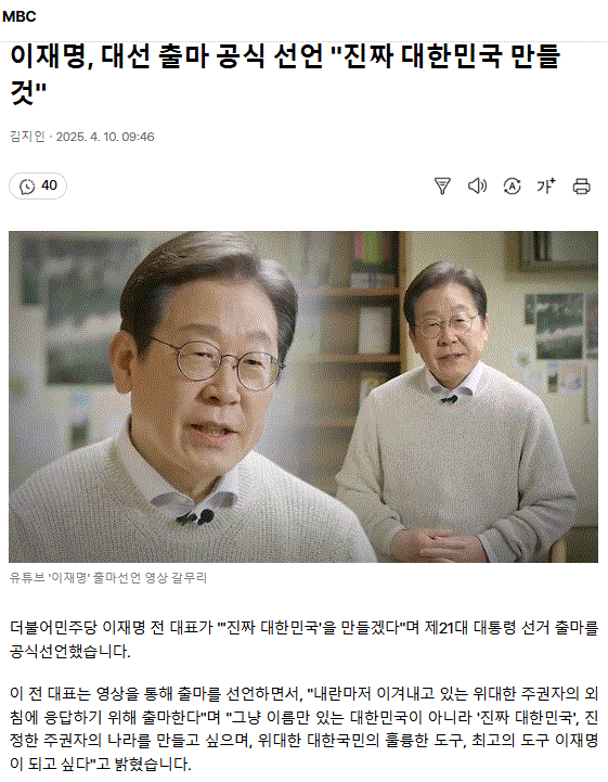 이재명, 대선 출마 선언··· "'먹사니즘' 넘어 '잘사니즘' 대한민국 만들고 싶다"