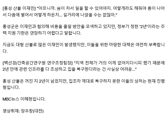산불 이후 컨테이너 생활 2년‥ "이제 갈 곳이 없어요"
