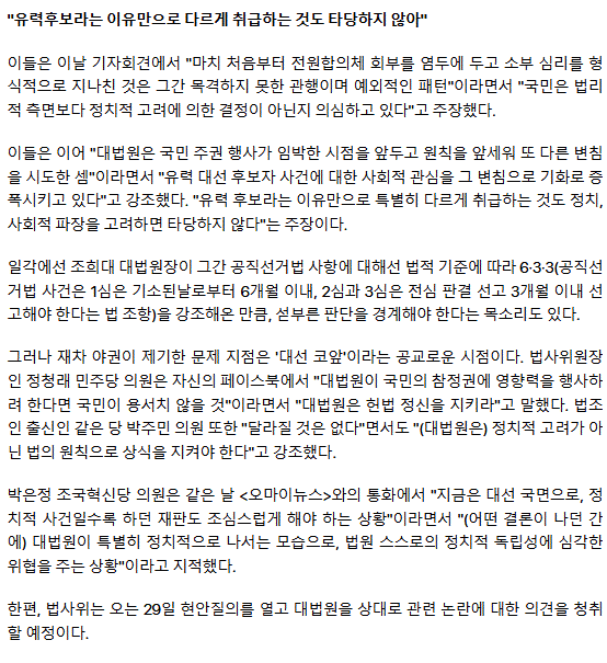 "이재명만? 대법원 예외적 패턴" '정치적 고려' 의심한 야권ㅡ국회선진화법위반은 5년이 지나 1심선고 안하니 못하니