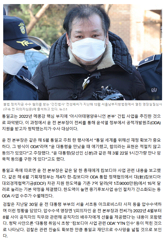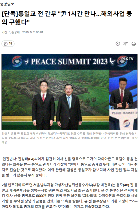 [단독] 통일교 전 간부 "尹 1시간 만나… 해외사업 동의 구했다"