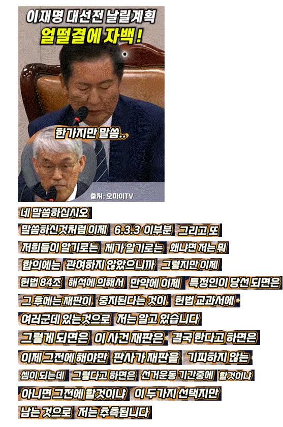 "이재명 날릴 계획" 얼떨결에 실토 ! 이재명 대선 대법원 조희대 ㅡ 대법원행정처장의 실토