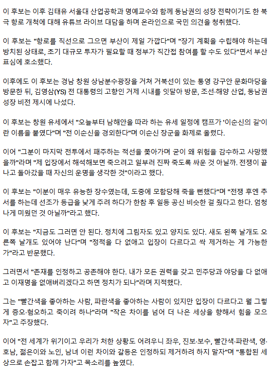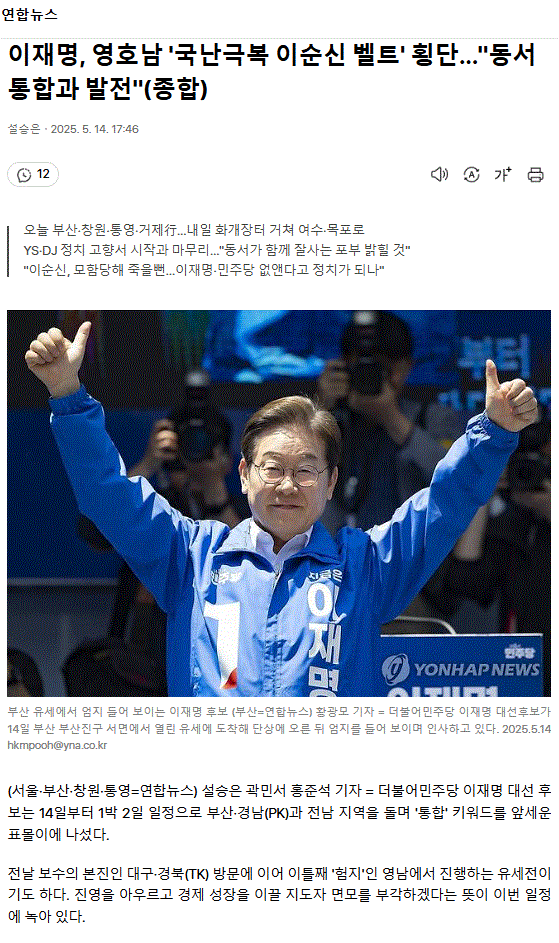 통영서 이순신 외친 이재명 “리더 한명이 나라 흥망성쇠 결정”ㅡ 리더를 잘뽑아야 나라가 산다
