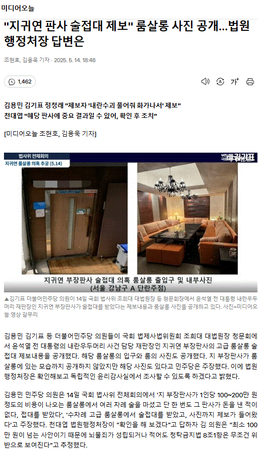 "지귀연 판사 술접대 제보" 룸살롱 사진 공개… 법원행정처장 답변은