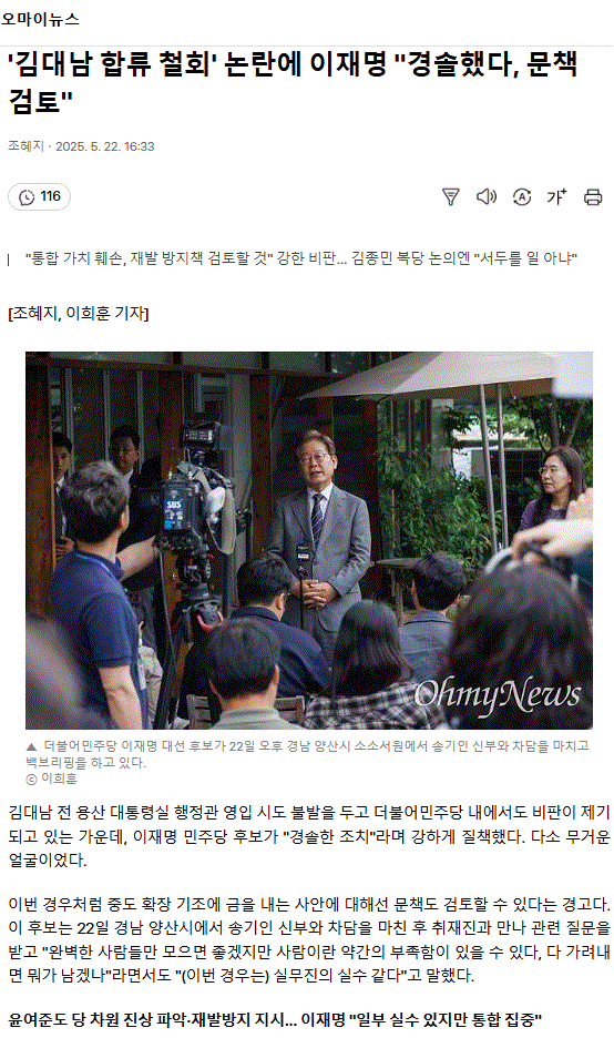 '김대남 합류 철회' 논란에 이재명 "경솔했다, 문책 검토"