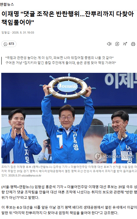 이재명 "댓글 조작은 반란행위… 잔뿌리까지 다찾아 책임물어야"