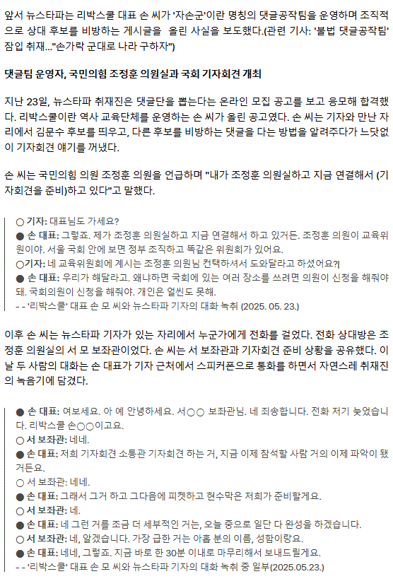 댓글공작팀과 '가짜 기자회견' 기획한 국민의힘