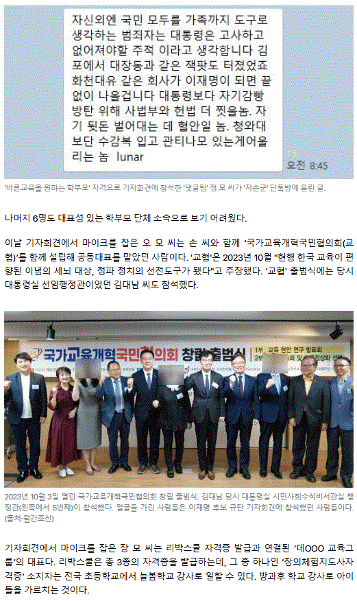우체국장 출신 ‘리박스쿨’ 대표, 현재 교육부 장관 '정책자문위원'