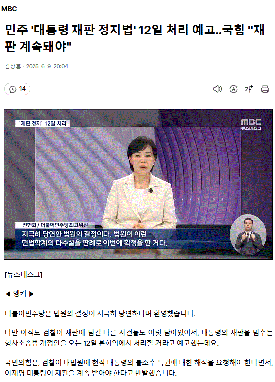 민주 '대통령 재판 정지법' 12일 처리 예고‥ 국힘 "재판 계속돼야"
