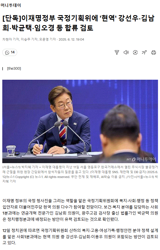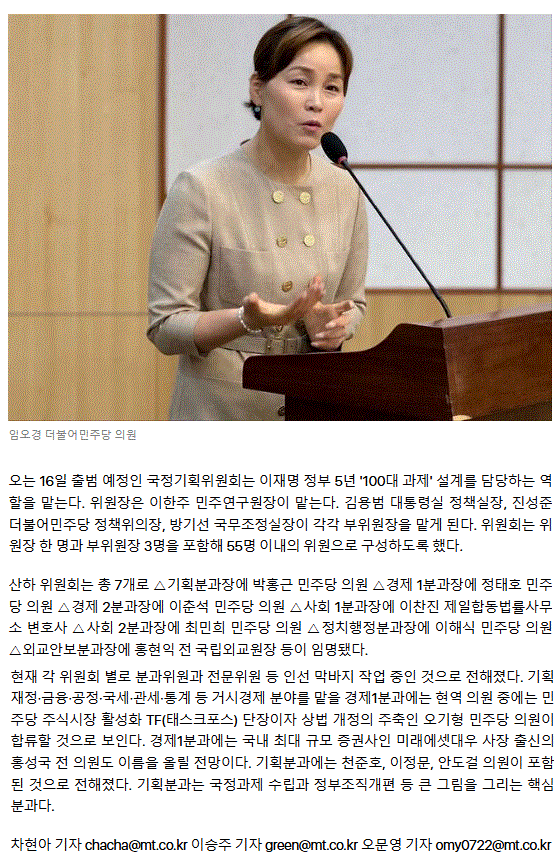 [단독] 이재명정부 국정기획위에 '현역' 강선우·김남희·박균택·임오경 등 합류 검토