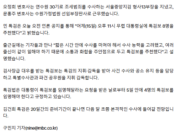 [단독] 민중기 특검, 김형근·박상진·문홍주·오정희 특검보로 추천