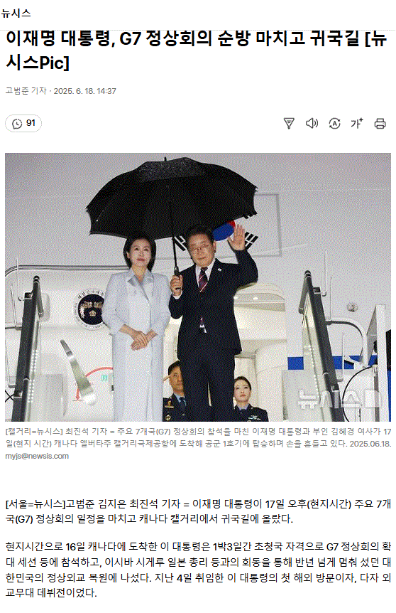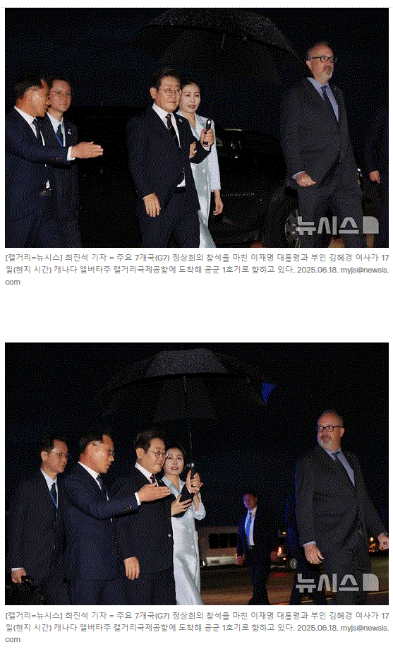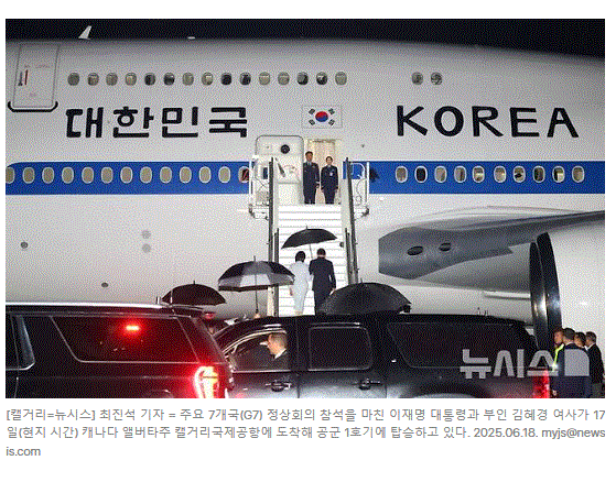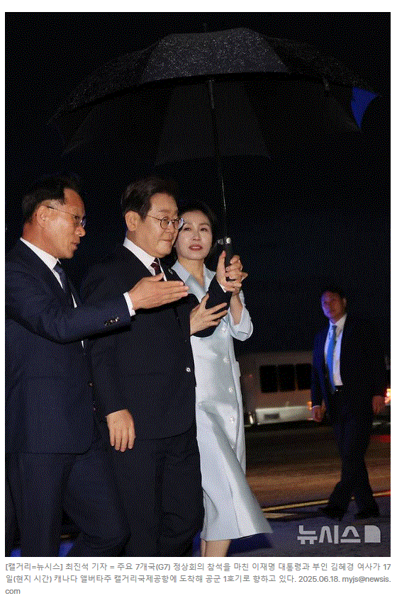 이재명 대통령, G7 정상회의 순방 마치고 귀국길 [뉴시스Pic] ㅡ 멋진 김혜경 여사