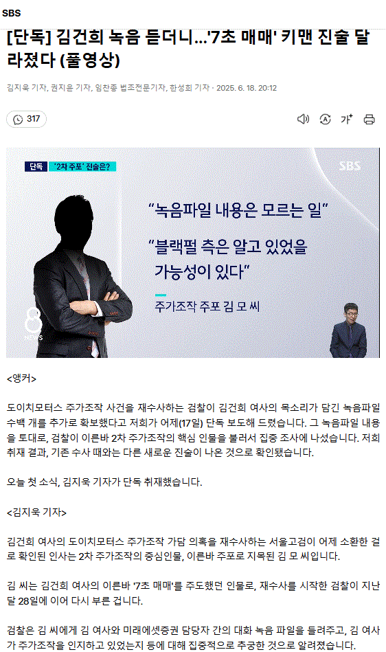 [단독] 김건희 녹음 듣더니… '7초 매매' 키맨 진술 달라졌다 (풀영상)