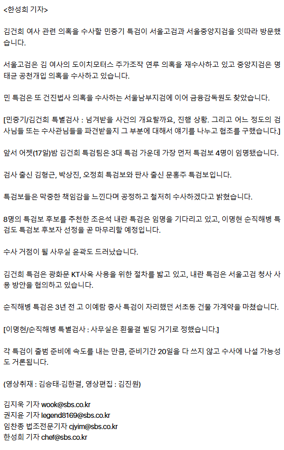 '김건희 특검' 민중기 "중앙지검에 검사·수사관 파견 협조 요청"