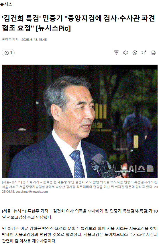 '김건희 특검' 민중기 "중앙지검에 검사·수사관 파견 협조 요청" [뉴시스Pic]