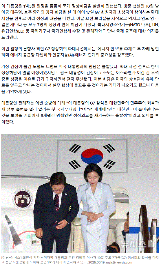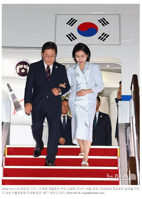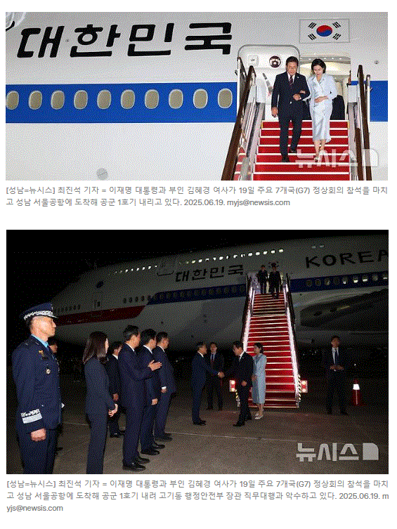 G7 순방 마치고 한국 도착한 이재명 대통령 [뉴시스Pic]