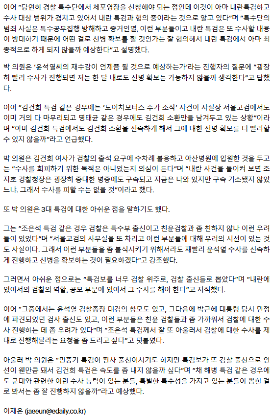 박은정 "윤석열 부부 구속수사 불가피… 소환불응, 체포영장 사유"