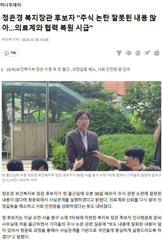 정은경 복지장관 후보자 "주식 논란 잘못된 내용 많아… 의료계와 협력 복원 시급"