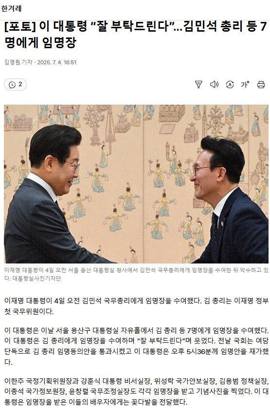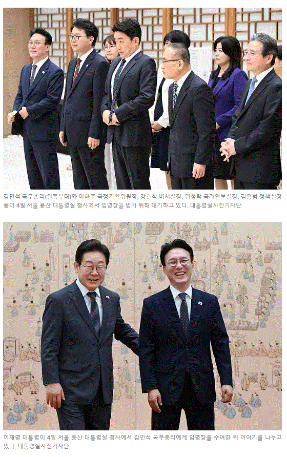 [포토] 이 대통령 “잘 부탁드린다”…김민석 총리 등 7명에게 임명장