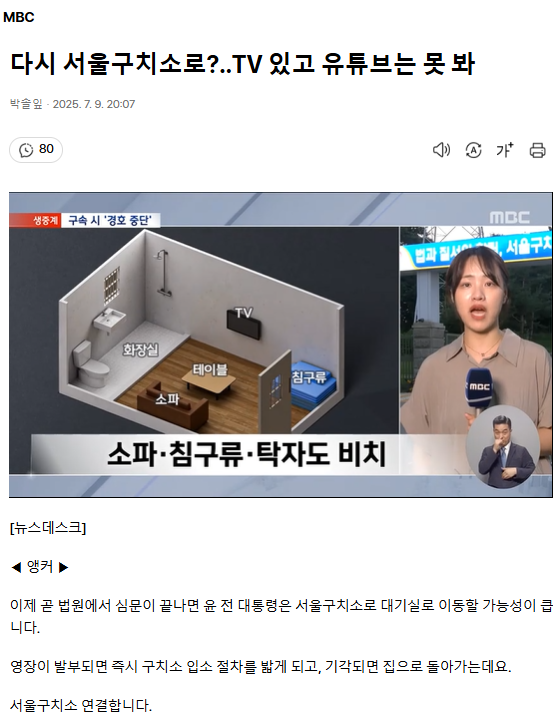 다시 서울구치소로?‥ TV 있고 유튜브는 못 봐