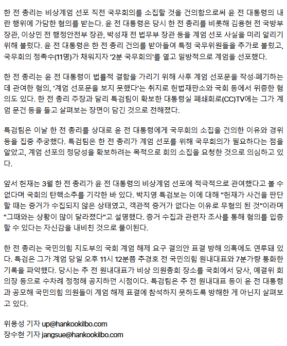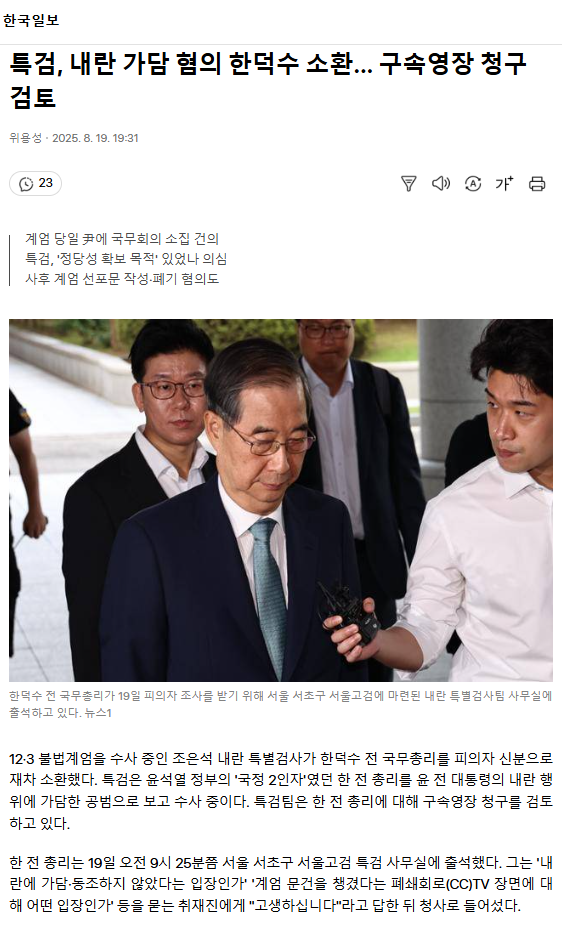 특검, 내란 가담 혐의 한덕수 소환... 구속영장 청구 검토