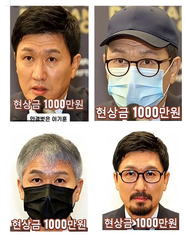 수십억 수백억 범죄에 관련된 지명수배 현상금수준이면 1억 정도는 되야지 잡범도 아니고 가오 떨어지게 1000만원 ??