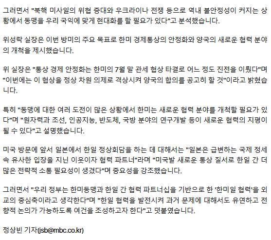 위성락 "한미 동맹 현대화, 방미 목표 중 하나‥ 안보 더 튼튼해지도록"