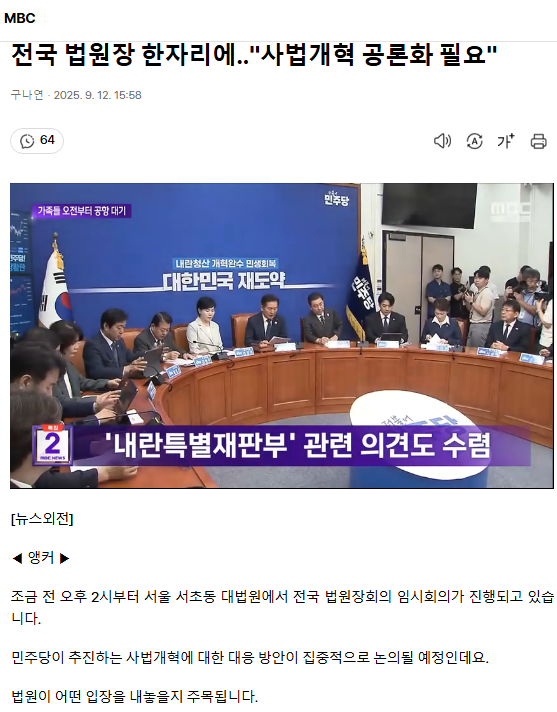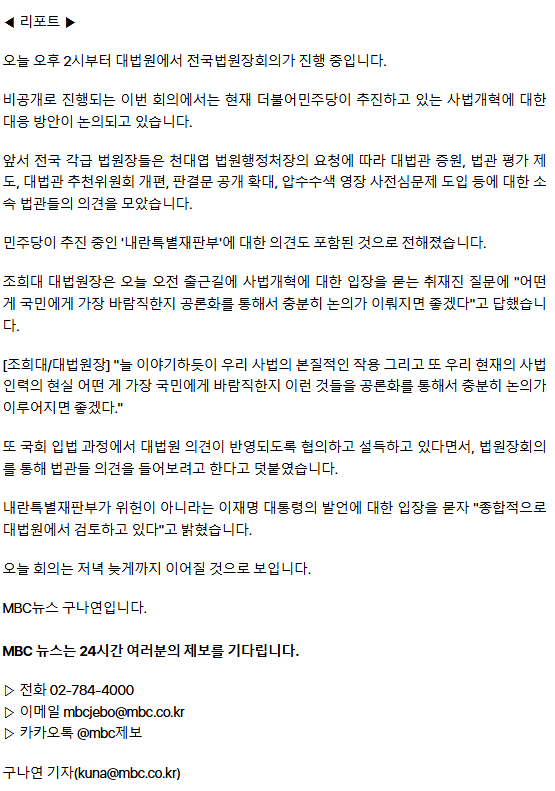 전국 법원장 한자리에‥ "사법개혁 공론화 필요"
