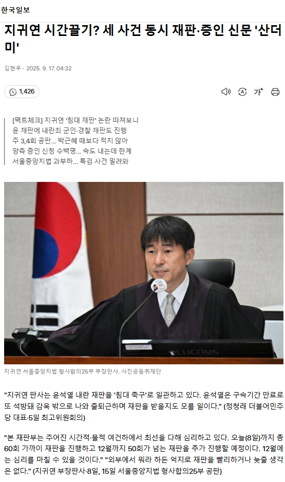 지귀연 시간끌기? 세 사건 동시 재판·증인 신문 '산더미'ㅡ 1주일에 1번 열면서, 특별재판부 만들자