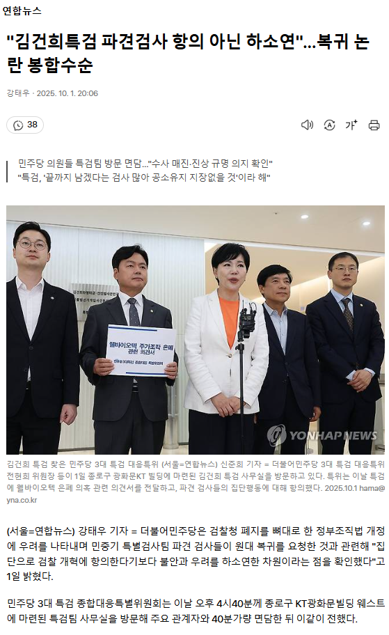 "김건희특검 파견검사 항의 아닌 하소연"… 복귀 논란 봉합수순