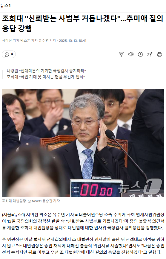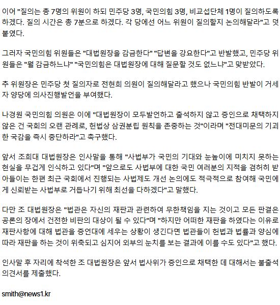 조희대 "신뢰받는 사법부 거듭나겠다"… 추미애 질의응답 강행 ㅡ 조희대가 사퇴해야 사법부 신뢰회복