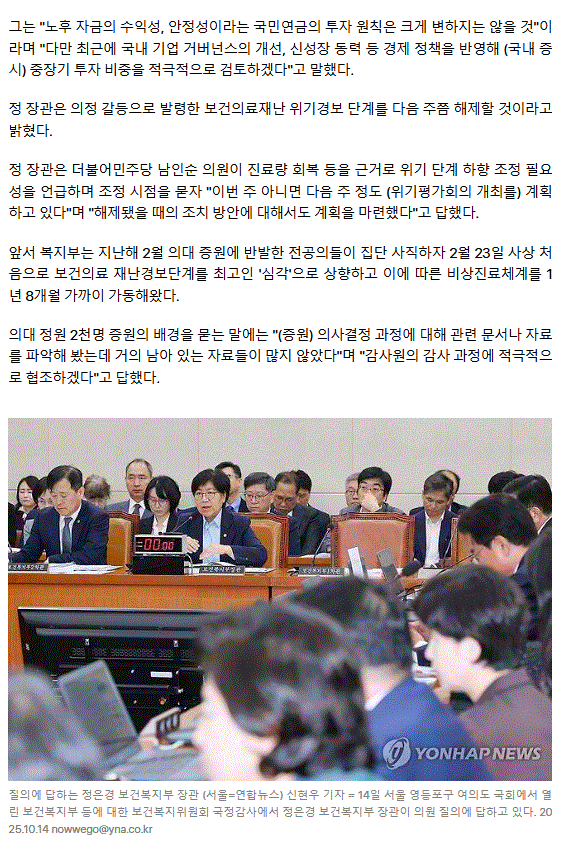정은경, 국민연금 국내증시 투자확대 주문에 "중장기 비중 검토"