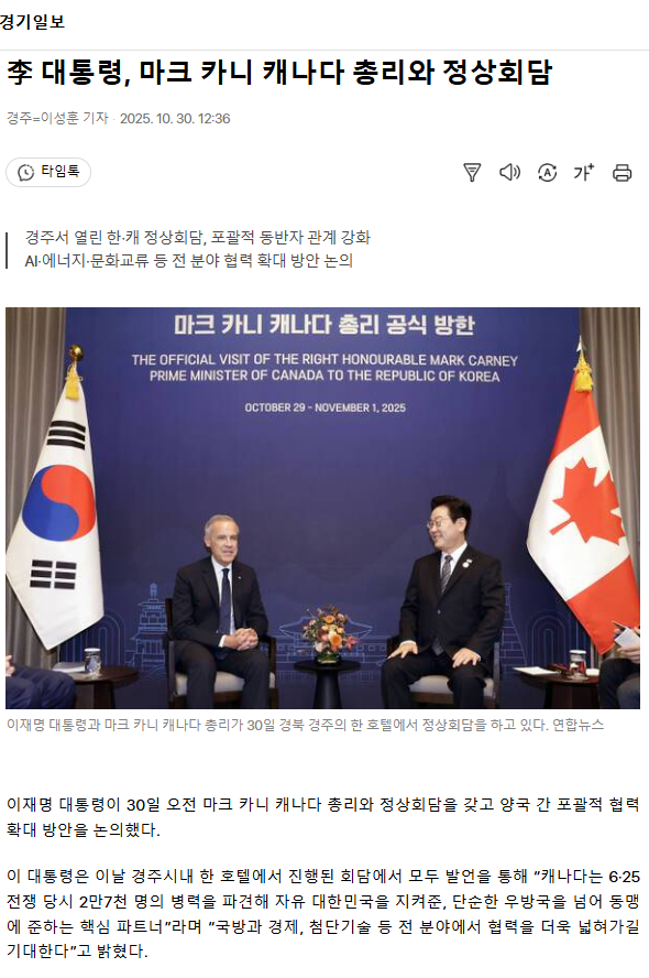 李 대통령, 마크 카니 캐나다 총리와 정상회담
