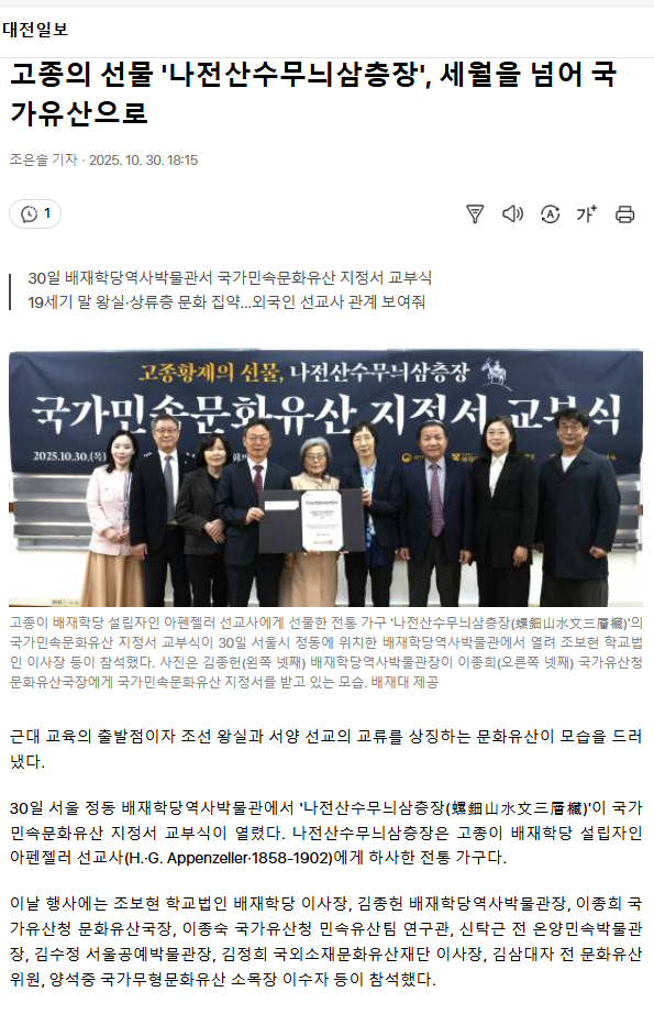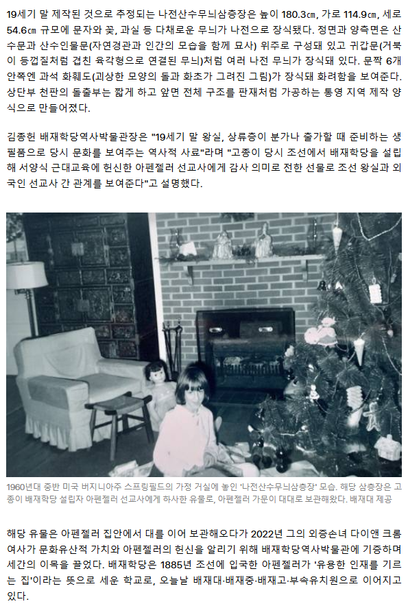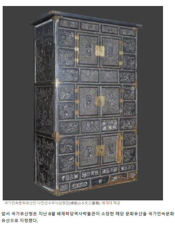 고종의 선물 '나전산수무늬삼층장', 세월을 넘어 국가유산으로