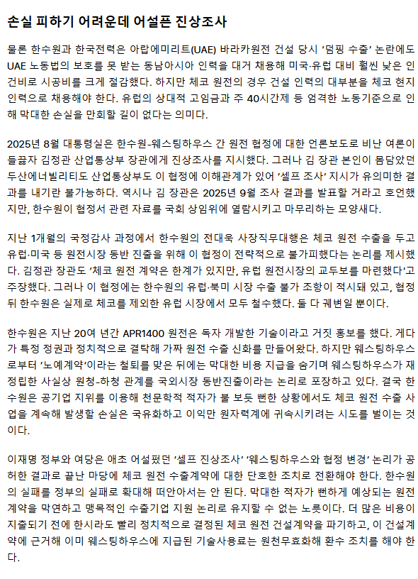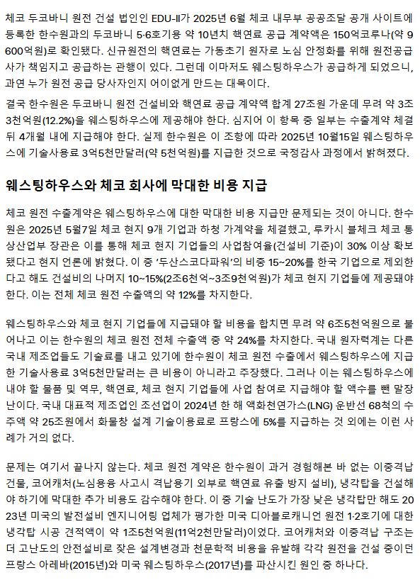 한수원, 미국 기업에 퍼주기 원전 수출 계약… 손실은 국유화, 이익은 원전업계로 ㅡ 이익과 책임을 하나로