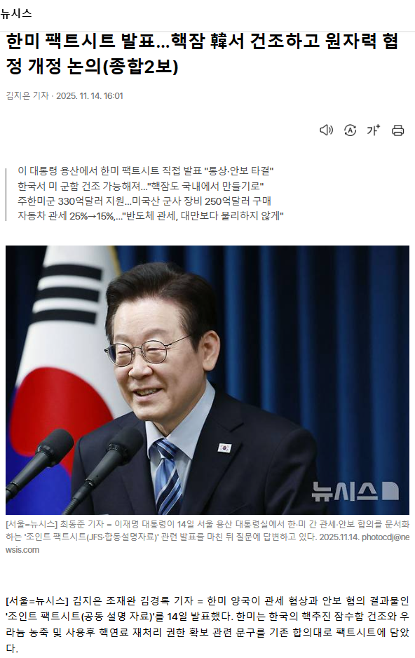 한미 팩트시트 발표… 핵잠 韓서 건조하고 원자력 협정 개정 논의 (종합2보)