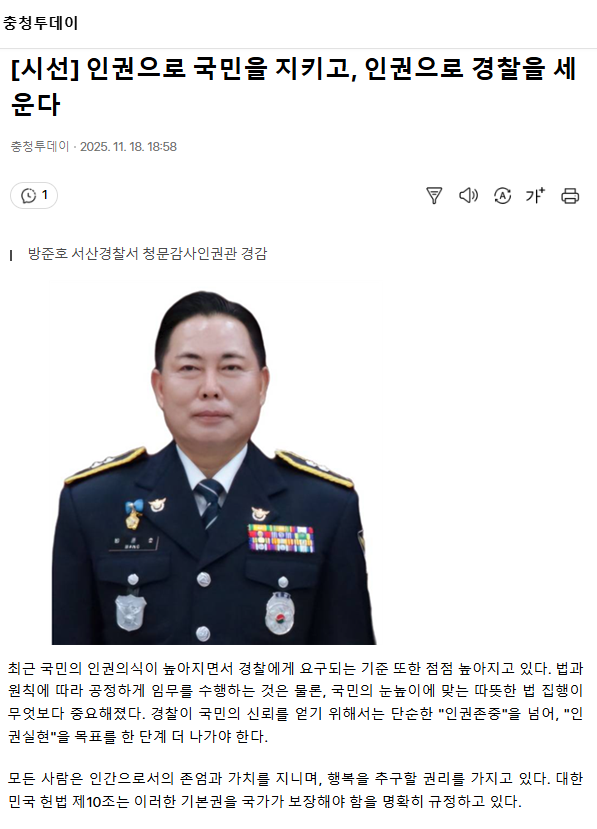[시선] 인권으로 국민을 지키고, 인권으로 경찰을 세운다
