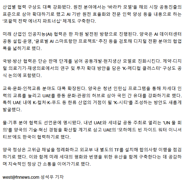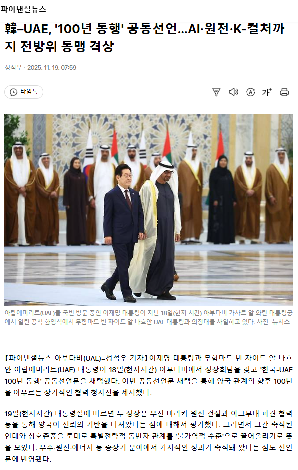 韓–UAE, '100년 동행' 공동선언… AI·원전·K-컬처까지 전방위 동맹 격상