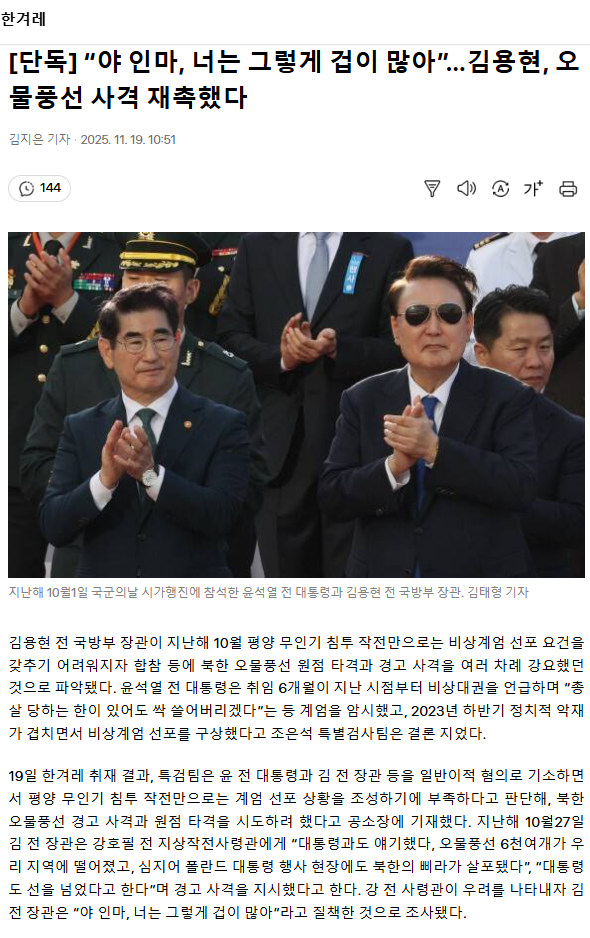 [단독] “야 인마, 너는 그렇게 겁이 많아”… 김용현, 오물풍선 사격 재촉했다 ㅡ 강호필 전 차장