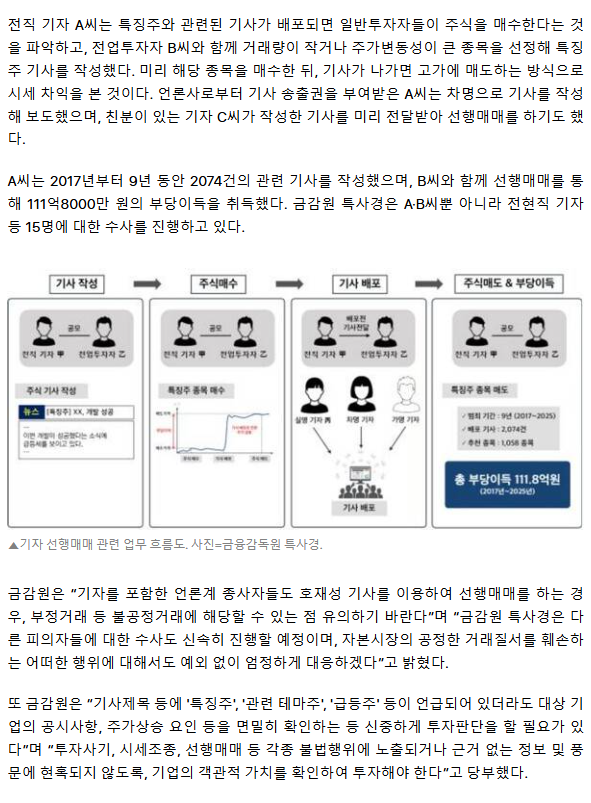 '특징주' 기사로 주가 올려 111억 번 전직 기자, 구속 송치