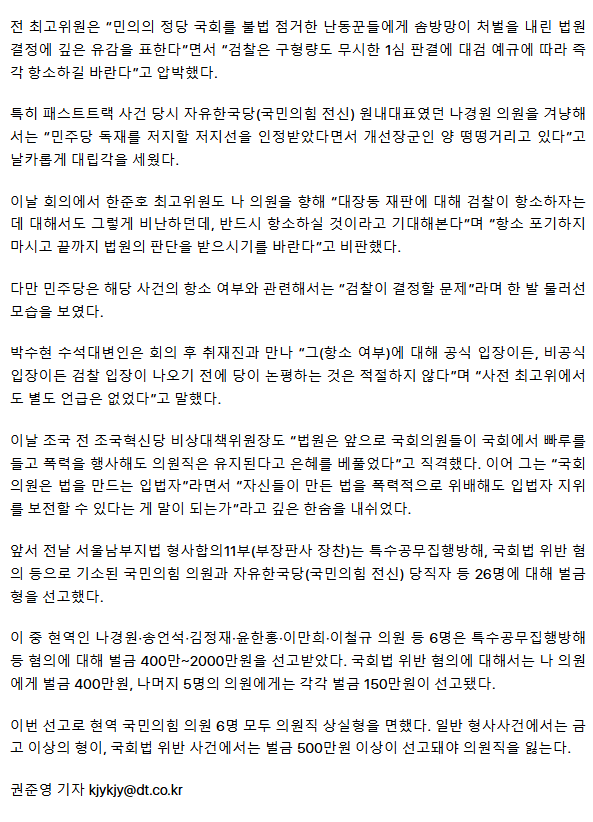 당원들을 대표하는 이언주 한준호 황명선 김병기 의원들의 숙의 의견을 무시하고 날치기 통과시키는건 당원주권주의를 표방하는 대표가 할 짓은 아니라고 보여지는데요 당의 규칙과 법을 무시하고 자기 하고싶으대로 하는 행태가 꼭 윤석열을 보는듯요