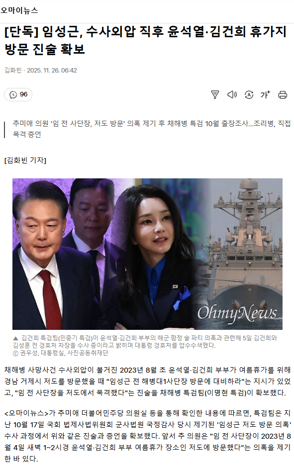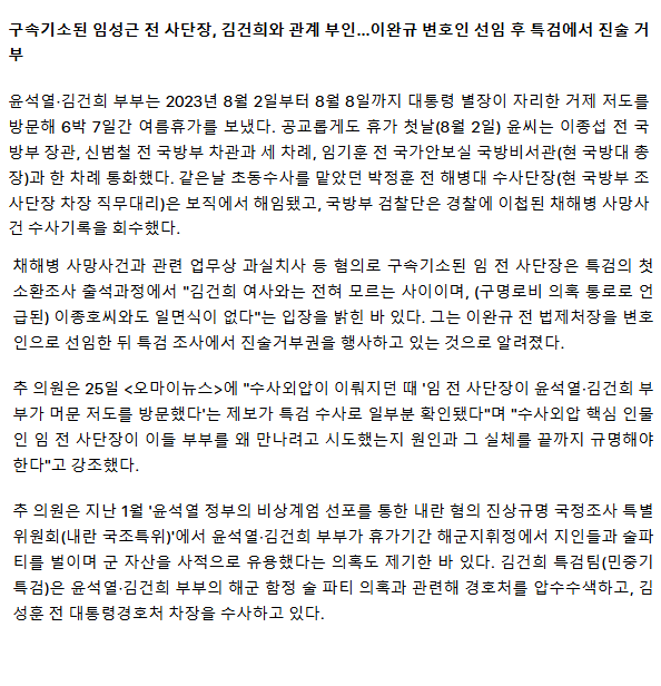 [단독] 임성근, 수사외압 직후 윤석열·김건희 휴가지 방문 진술 확보