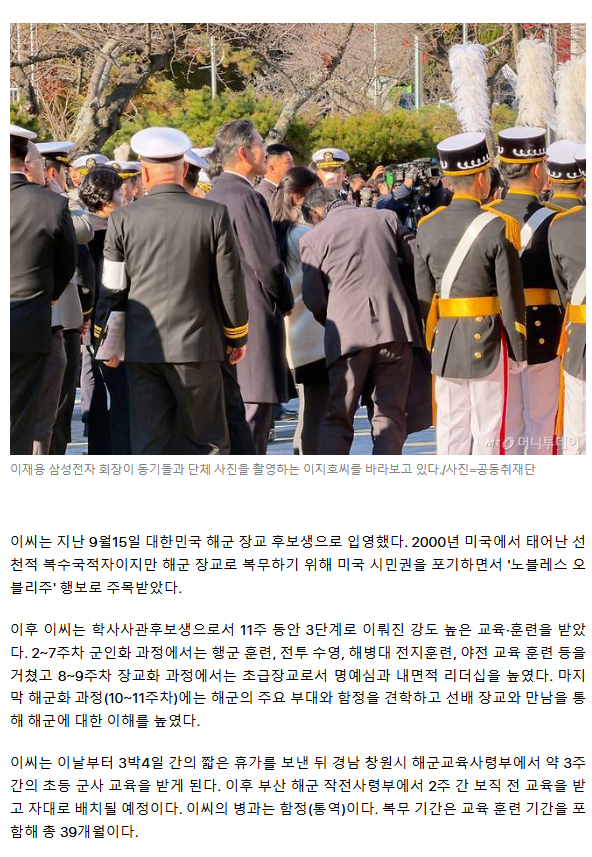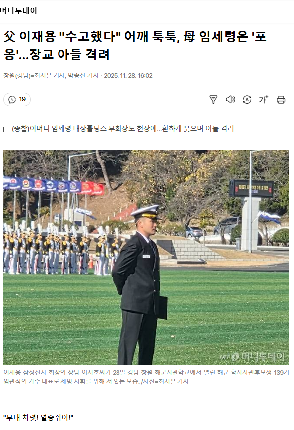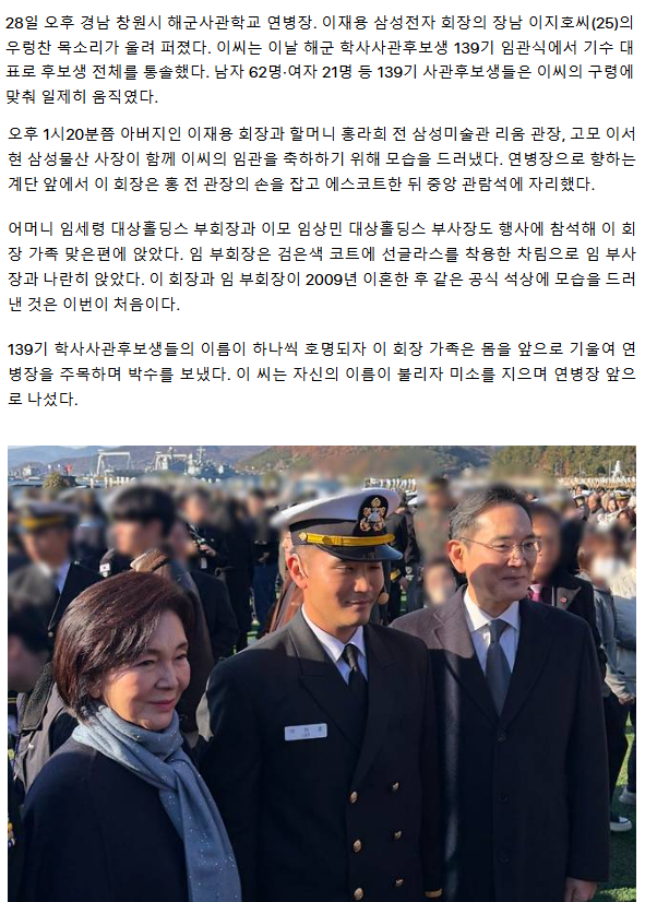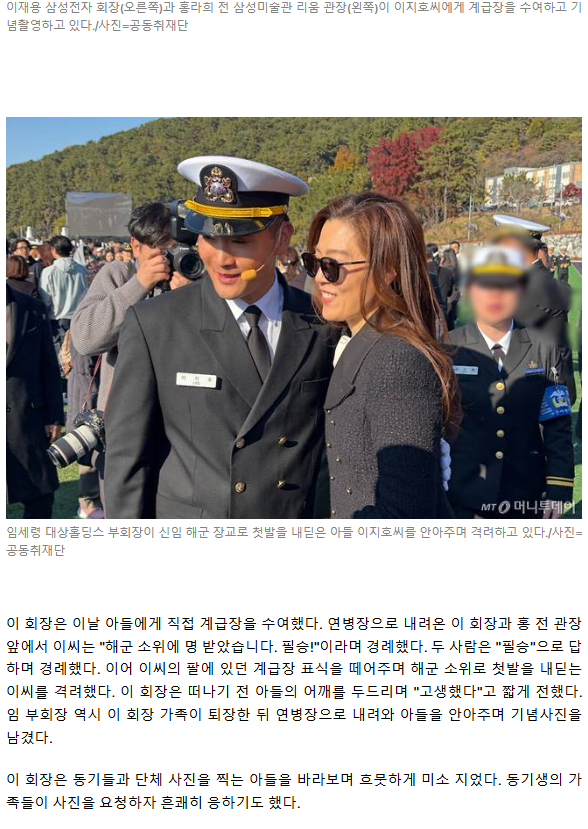 父 이재용 "수고했다" 어깨 툭툭, 母 임세령은 '포옹'...장교 아들 격려