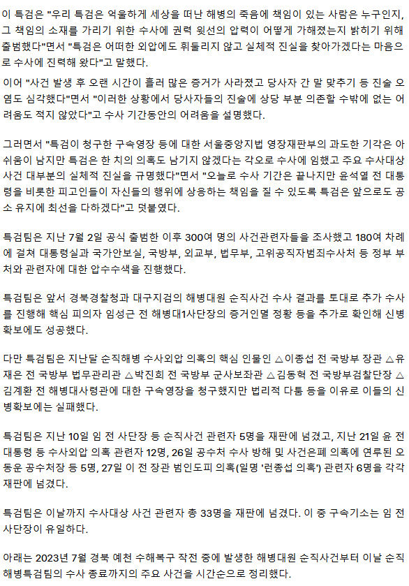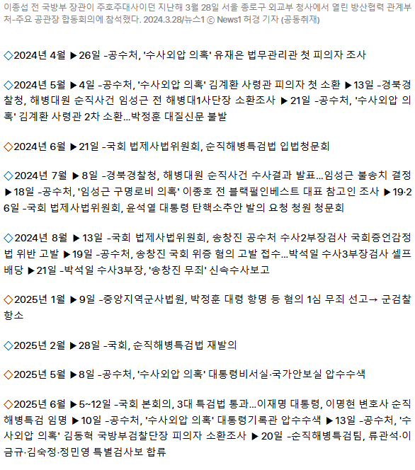 [일지] 20237월 해병대원 순직부터 순직해병특검 수사종료까지