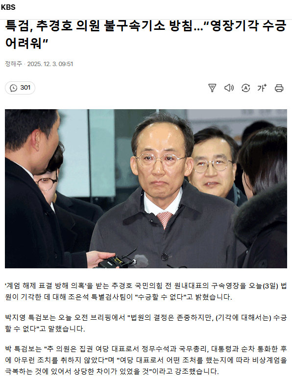 특검, 추경호 의원 불구속기소 방침… “영장기각 수긍 어려워”